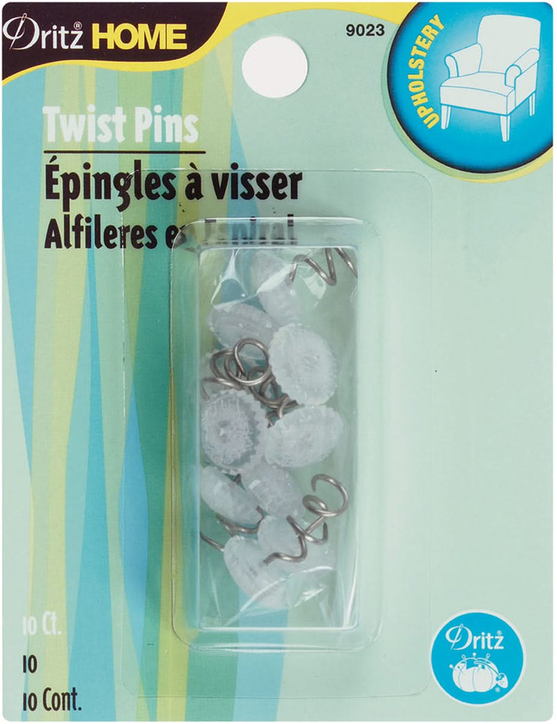 Dritz Home Twist Pins 10 pack - Clear - This package contains ten 3/4inch (1.905cm) pins with 12mm clear plastic heads.