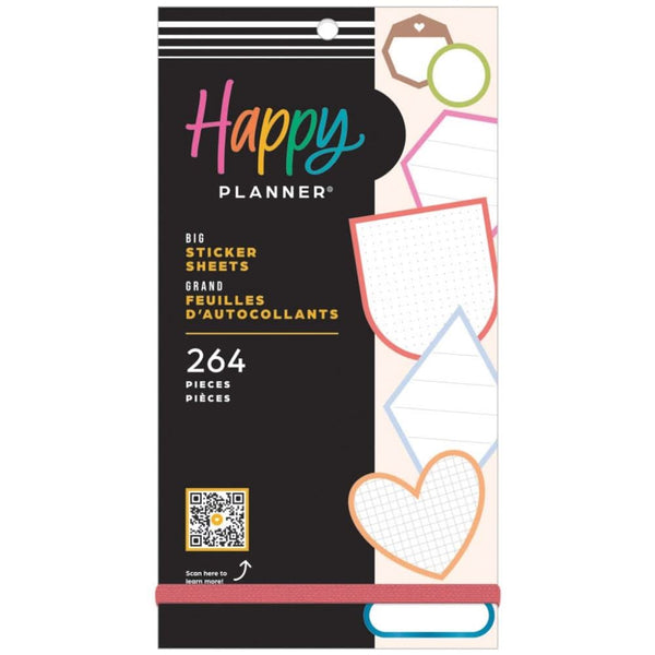 Happy Planner Big Sticker Value Pack 30/Pkg Colourful Boxes - This Bright Colourful Boxes sticker book is ready for your notes and reminders. Use in any Big size planner or notebook and create structure in your layouts and pages. Keep planning creative and vibrant with boxes that add an element of fun and function to your organizational process. Write it down and make a plan! 30 sheet sticker book with 264 Bright and Colourful Boxes themed stickers. Fitted for Big size Happy Planner items. Matte paper stickers and decorative stickers to add to your monthly calendars and weekly spreads. Decorative and functional memo boxes in various colours and foil accents.