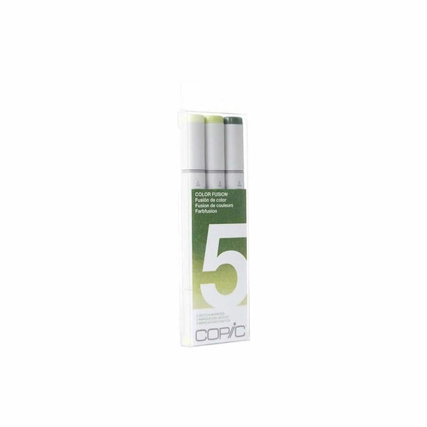 Copic Sketch Set 3 Colour Fusion 5 - Green - Copic Color Fusion sets are an affordable way to achieve perfect blends. Fusion Color sets contain three preselected colors in an ideal blending group. Grab all the sets in each color family to kickstart your Copic collection. This Fusion Set includes: G40-S, G43-S, G46-S