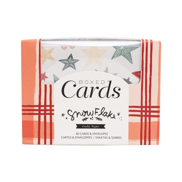 Crate Paper A2 Cards W/Envelopes (4.375"X5.75") 40/Box - Snowflake. This boxed set of cards is perfect for any card maker or for anyone just looking to send notes to friends and loved ones. Use them as they are or embellish and customize them to your recipient and occasion. Each card features a pretty patterned design on the outside with a blank white inside. This package contains 40 5.75x4.375 inch cards (four each of ten designs) and 40 envelopes.