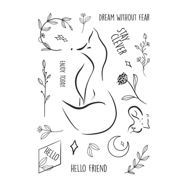 Creative Expressions A5 Clear Stamp Set By Bonnita Moaby - Clever Fox. Even from a young age, Bonnita Moaby remembers spending hours colouring in or drawing. This carried on into her school years and college. After training and working as a graphic designer, Bonnita has moved on to publish colouring books and has been awarded many prizes for her artwork. She has now turned her hand to designing stamps for us. These clear sets are fun designs; the roots of them can be seen in Bonnita’s graphic beginnings. This fun sketchy fox is accompanied by foliage and five greeting stamps. Ready to mount on an acrylic block, the stamps can be used with ink pads, paint, or used with pigment ink and embossing powder (each sold separately). They are suitable for paper, fabric, or any other surface, depending on the ink choice. Size: 15.2 x 20.3 cm size – 19 piece stamp set.