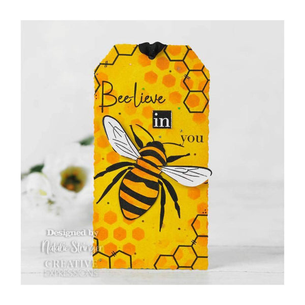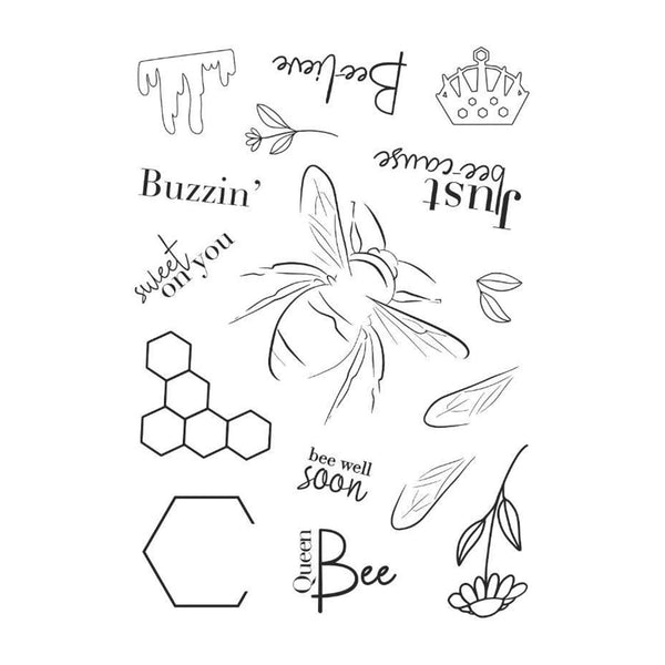 Creative Expressions A5 Clear Stamp Set By Bonnita Moaby - Queen Bee. Even from a young age, Bonnita Moaby remembers spending hours colouring in or drawing. This carried on into her school years and college. After training and working as a graphic designer, Bonnita has moved on to publish colouring books and has been awarded many prizes for her artwork. She has now turned her hand to designing stamps for us. These clear sets are fun designs; the roots of them can be seen in Bonnita’s graphic beginnings. This queen bee is accompanied by useful phrases, honeycomb and foliage. Ready to mount on an acrylic block, the stamps can be used with ink pads, paint, or used with pigment ink and embossing powder (each sold separately). They are suitable for paper, fabric, or any other surface, depending on the ink choice. Size: 15.2 x 20.3 cm size – 16 piece stamp set.