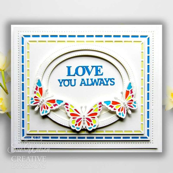 Creative Expressions Cover Plate Craft Die By Sue Wilson - Frames & Tags - Butterfly Breeze Cover Plate. This Butterfly Breeze Cover Plate craft die is perfect to use as a frame or a card front. The high-quality steel dies are compatible with most leading die-cutting machines (sold separately). 1 die. Size 13.8 cm x 10.8 cm (5.4 in x 4.2 in).