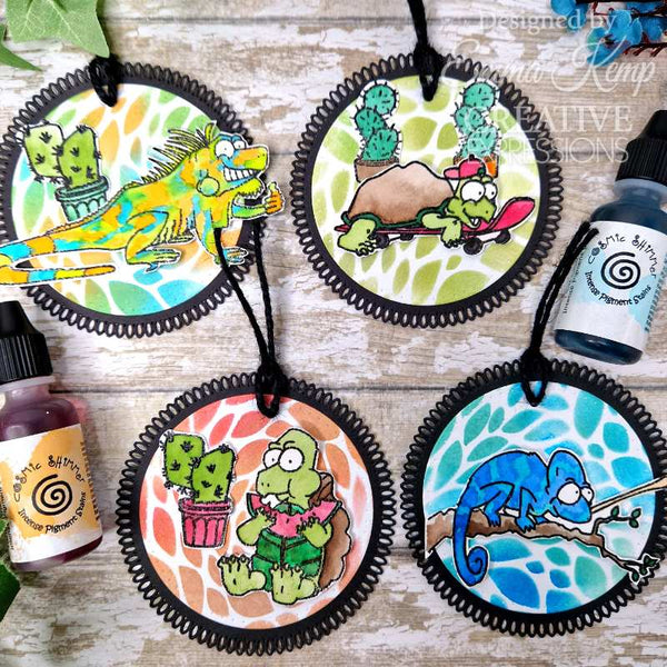 Creative Expressions Designer Boutique Clear Stamp 6"x 8" - One in a Chameleon. This fun One In A Chameleon clear stamp set is a great addition to our Designer Boutique range. These High quality photopolymer stamps give an excellent image, carefully peel the stamp from the carrier sheet and place on an acrylic block or stamping platform. These clear stamps are ideal for adding images to any projects and can be used with ink pads, paint, or used with pigment and embossing powder, all sold separately. They are suitable for paper fabric, or any other surface depending on the ink choice. Made in UK. 11 stamps. Size 6 in x 8 in (15.2 cm x 20.3cm).