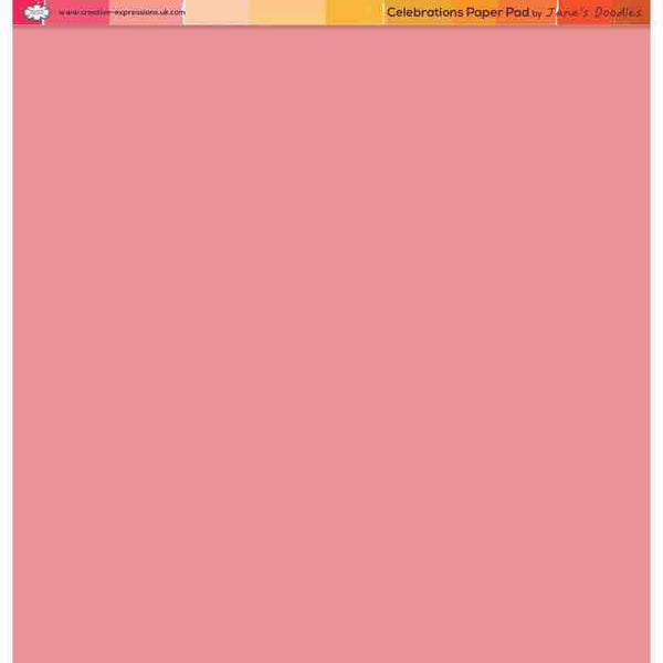 Creative Expressions Jane's Doodles Paper Pad 8"x 8" - Celebrations. The 8 in x 8 in Celebrations paper pad is full of 24 gorgeous double-sided patterned papers. There is a wonderful array of designs inspired by nature throughout the 24 sheets which are perfect to complement Janes’s collections. Made In UK. 150gsm. 8 in x 8 in pad.