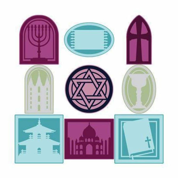 Cricut Cartridge Inspired Heart - Some symbols included are the menorah, a crucifix, a star and crescent, the bible, a Star of David, a prayer rug and more. Some phrases included on this cartridge are Pray, worship, Allah, and faith. [D24B]