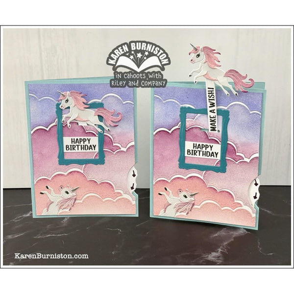 Karen Burniston Dies Curved Edges - The Karen Burniston Curved Edges Dies set includes 3 versatile border dies, each measuring approximately 4.3 inches wide. Designed to create distinct landscape edges, this set features a fluffy cloud border, a rolling wave, and a grassy edge, perfect for building scenic horizons or adding visual interest to card fronts.