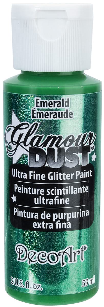 DecoArt Glamour Dust Glitter Paint 2oz - Emerald - Premium, ultra-fine glitter creates an elegant, sophisticated look for decor, general craft and decorative painting projects. Ideal for wood, canvas, paper-mache, terra-cotta, ceramic bisque, glass, resin, plastic and Styrofoam. Non-toxic and easily cleans up with soap and water while wet.