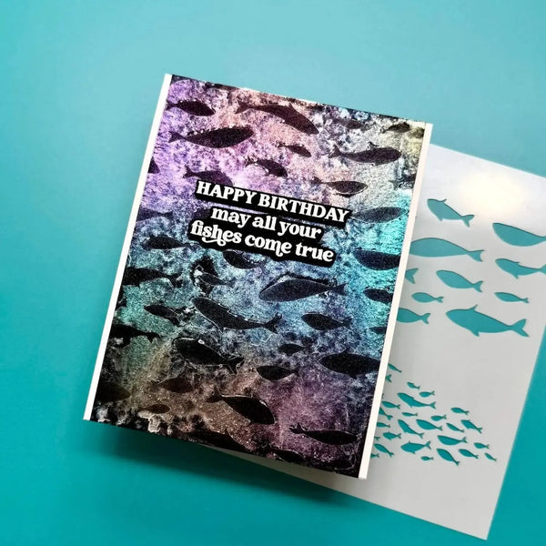 Simon Hurley create. Stencil 6"X6" Fish Frenzy - Dive into creativity with the Fish Frenzy Stencil from Simon Hurley create. This 6" x 6" stencil features a school of swimming fish thats perfect for creating playful underwater scenes, adding movement to card fronts, or building layered backgrounds.Perfect for use with blending brushes or adding texture with pastes and sprays. Use with Simon Hurley create. Stellar and Dye Ink Pads, Pastes, Solar Sprays, and more to design handmade cards and crafts. Stencil measures 6" x 6" (15.24cm x 15.24cm)