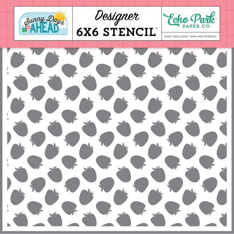 Echo Park Stencil 6"X6" Sun Kissed Fruit, Sunny Days Ahead - This collection kit contains a variety of twelve 12 x 12 inch 65lb. papers and a 12 x 12 inch element sticker sheet. The designs feature a colourful array of flowers, fruit, ice cream, butterflies, rainbows, clouds, and other elements in shades of red, orange, yellow, green, blue, pink, and purple.