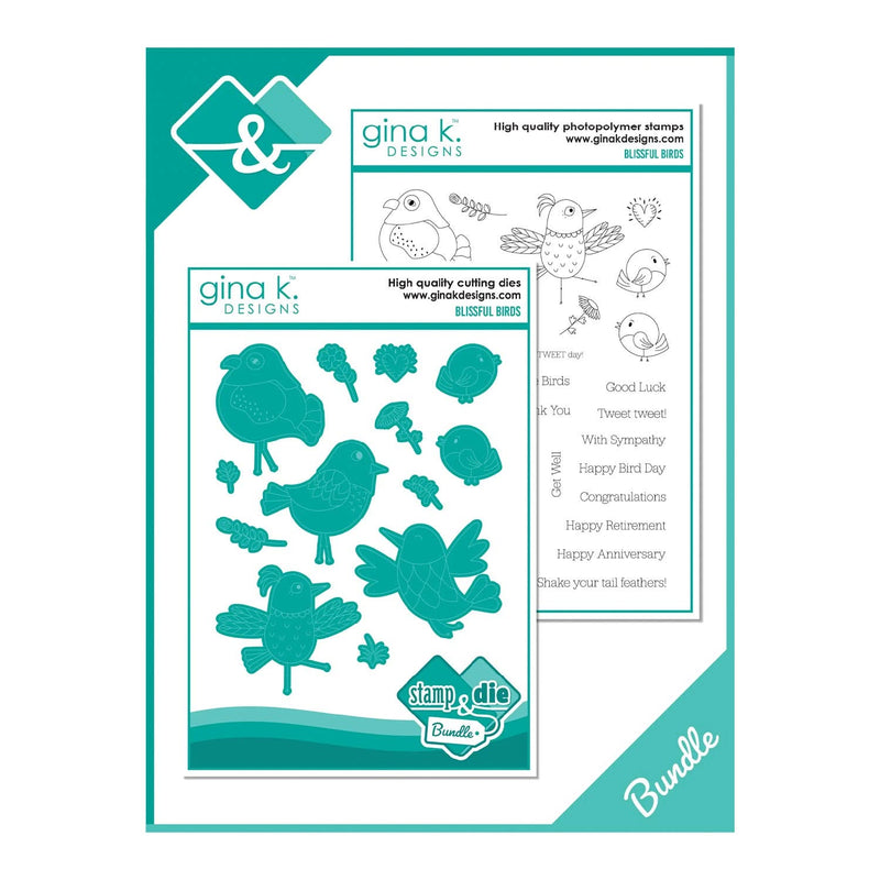 Gina K Designs Stamp & Die Set - Blissful Birds. Blissful Birds is a stamp set by Debrah Warner. This set is made of premium clear photopolymer and measures 6"x 8". Made in the USA