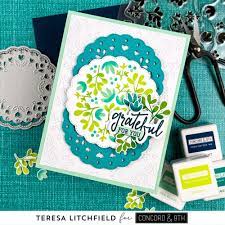 Concord & 9th Clear Stamps 4"X6" - Grateful Blooms - This 11 piece layering stamp set, Grateful Blooms, is from Concord & 9th. This is a double-step stamp set. The larger floral stamps have tabs at the top to help line up the layers. This stamp set also has extra leaf patterns and sentiments. These clear photopolymer stamps adhere to acrylic blocks and can be used with your favourite inks, markers, embossing powders, and other crafting mediums (sold separately). These stamps can be used to make cards, scrapbook pages, tags, journals, planners, and other paper crafting and mixed media projects. These stamps have a coordinating die set (C11161, sold separately). The largest stamp measures 2.68" x 3.06" and the smallest stamp measures 0.43" x 0.37". This stamp set is made in the USA.