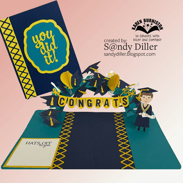 Karen Burniston Dies Graduation Elements - Celebrate the grad in style with the Karen Burniston Graduation Elements Dies. This 10-piece set includes everything you need to craft a personalized graduation scene, complete with a congratulations banner, multiple sizes of graduation caps, a gown, diploma, and a medal on a necklace.