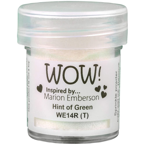 WOW! Embossing Powder 15ml - Hint Of Green - Embossing powders are the perfect way to add sparkle along with a raised image to scrapbooking pages, greeting cards, mixed media, altered art and more! Sprinkle over wet ink, heat and see the magic rise, shine and sparkle! Available in a variety of colours and styles, each sold separately. This package contains one 15ml container of WOW! Embossing Powder.