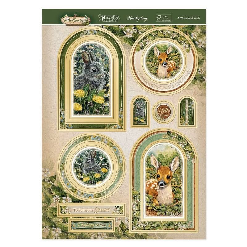 Hunkydory In the Countryside - A Woodland Walk Luxury Topper Set. Packed full of stunning classic British countryside animals, In the Countryside is the perfect collection to brighten your New Year crafting. Artwork includes a sweet little bunny, pretty fawn, cheerful chicks, gorgeous blue tits, an adorable lamb, playful calves, muddy pigs and a lovely donkey and geese scene. Everything you would see on your perfect British springtime countryside walk.