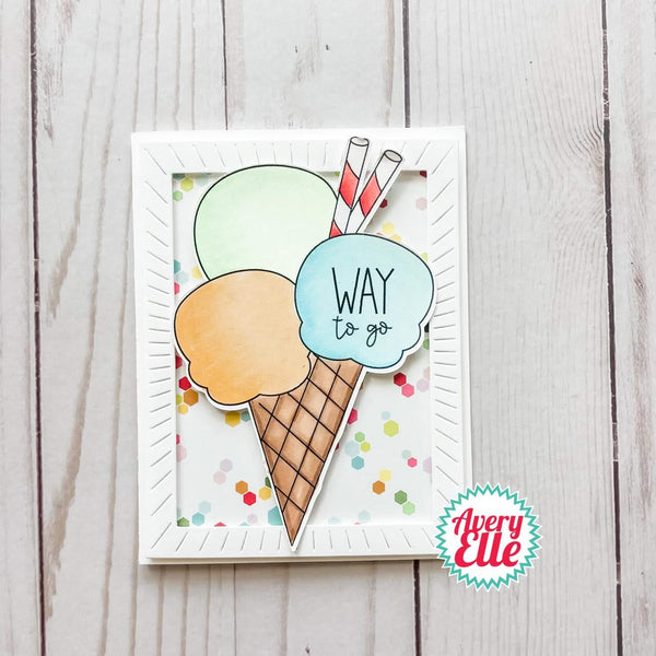 Avery Elle Elle-ments Dies - Ice Cream Celebrations - This four piece Elle-Ments die set, Ice Cream Celebrations, is from Avery Elle. This die set coordinates with the Ice Cream Celebrations stamp set (sold separately) and cuts out the large ice cream cone and the shapes of the three scoops of ice cream to help make a shaker card. These dies are compatible with leading die cutting machines (sold separately). These dies can be used on cards, scrapbook pages, tags, and other paper crafting projects. The largest die measures 3.68" x 5.75" and the smallest die measures 1.43" x 1.06".