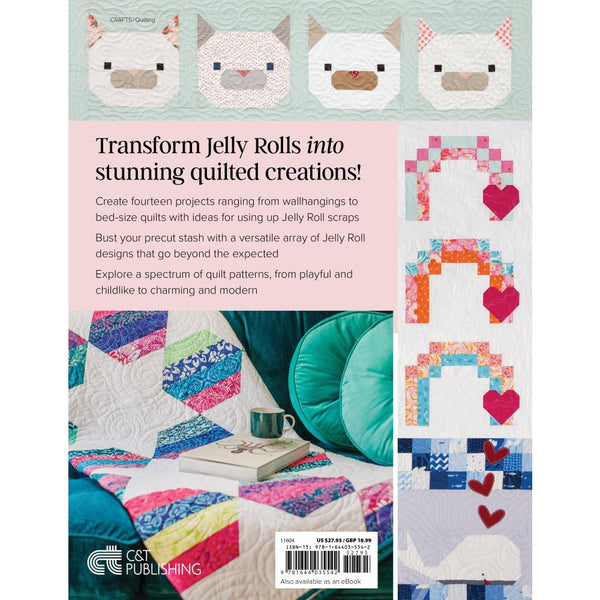 Can you believe these stunning quilts are made with Jelly Rolls? Absolutely! These innovative patterns demonstrate that the versatile 2.5-inch precut strips are capable of far more than you ever imagined! Discover how Jelly Rolls provide a diverse sampling of fabric without overwhelming your stash or budget. Explore dynamic projects that use a variety of shapes like squares, long rectangles, half-rectangle triangles, half-hexagons, and more! Featuring novelty blocks like rainbows, whales, and cats, the projects range from charming wall hangings to impressive queen-size quilts. Move beyond the 'quick to sew' concept and elevate your Jelly Roll quilts! Author: Michelle Lander Cain. Softcover, 112 pages. Published Year: 2025. ISBN 978-1-64403-554-2.