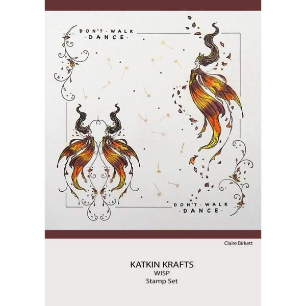Katkin Krafts Clear Stamp Set - Wisp 6" x 8". This Clear Stamp Collection has been hand drawn by Katkin Krafts and guest artist to inspire creativity in any artist. This Meredith Dillman designed Clear Stamp set features 5 individual stamps featuring a detailed wind spirit princess demonstrating their powerful essence, with surrounding leafs and wind with a themed sentiment, 'DON'T. WALK. DANCE.' Use the Clear Stamp set for cards, scrapbook pages, tags, journalism, planner pages and any other paper crafting and mixed media projects (each sold separately). Recommended to mount on an acrylic block, the stamps can be used with your favourite inks, markers, embossing powders, and other crafting mediums (each sold separately). The smallest Clear Stamp measures at 1.2cm x 4.2cm and ranges up to largest Clear Stamp measuring 15.2cm x 6.5cm (approx.)