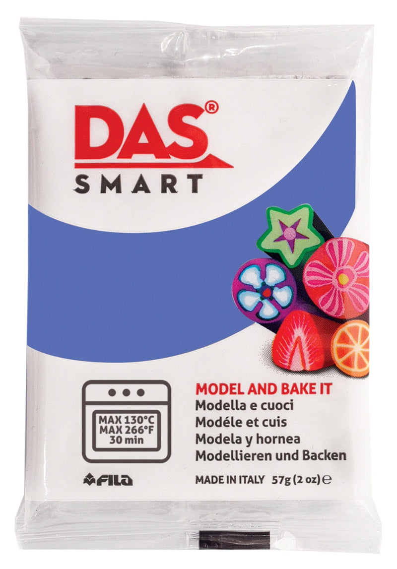 DAS Smart Oven Hardening Clay 2oz - Lavender - Easy to manipulate, with a compact and versatile structure, DAS Smart is the new PVC-based oven-hardening clay that does not stain your hands. It is ideal for making murrine, creating jewels and small artifacts. Bake in a 130C oven for up to 30 minutes, but objects can be cooked several times to add new details. The 57g. block is packed in an innovative pack consisting of 2 single-sealed packs, specially designed for convenience and better preservation; it is available in 45 colours, lively and modern, all of which can be combined.
