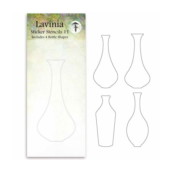 Lavinia Sticker Stencil #11 - Tall Bottle Collection. The beautiful new sticker stencils in Sticker Stencils Set 11 feature 4 designs of a tall bottle perfect for smaller cards. Complete the look by adding the “Small Cork” stamp, designed to fit these bottles (LAV955, sold separately). Now you can create your own world within a bottle, a fairy terrarium or even stamp your own message in a bottle, the choice is yours! Lavinia Stamps sticker stencils can be used as the positive and negative. Repositionable, reusable and wipeable, they are great for card projects, journaling, scrapbooking and other creative projects.