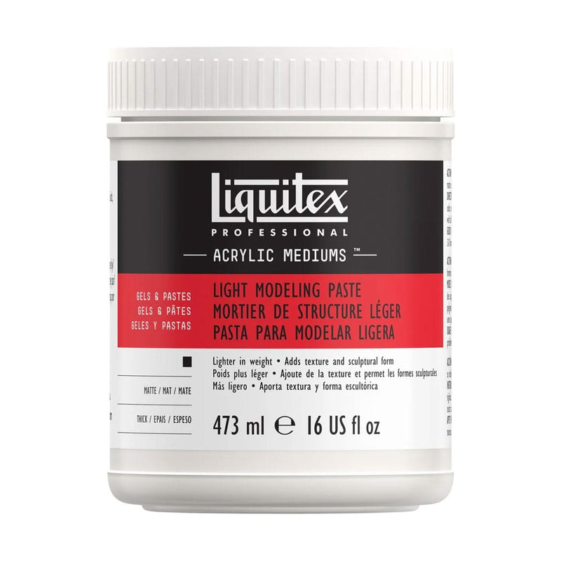 Liquitex Professional Light Modeling Paste 473ml. An airy, lightweight acrylic and marble putty to build heavy texture and 3D forms in situations where weight is a factor.