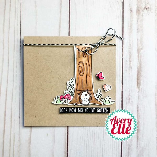 Avery Elle Clear Stamp Set 4"X3" Look How Big - Grow your crafting skills with the Look How Big Clear Photopolymer Stamps by Avery Elle. The set includes 9 clear photopolymer stamps in the shapes of owls, a tree trunk, mushrooms, a butterfly, and more. The stamps can be used with an acrylic block, your favourite inks, and the coordinating Look How Big dies (each sold separately). The largest stamp in the set measures 3" x 1.88" and the smallest measures .38" x .38". Made in the USA.