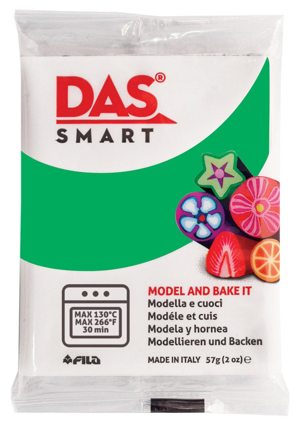 DAS Smart Oven Hardening Clay 2oz - Mint - Easy to manipulate, with a compact and versatile structure, DAS Smart is the new PVC-based oven-hardening clay that does not stain your hands. It is ideal for making murrine, creating jewels and small artifacts. Bake in a 130C oven for up to 30 minutes, but objects can be cooked several times to add new details. The 57g. block is packed in an innovative pack consisting of 2 single-sealed packs, specially designed for convenience and better preservation; it is available in 45 colours, lively and modern, all of which can be combined.