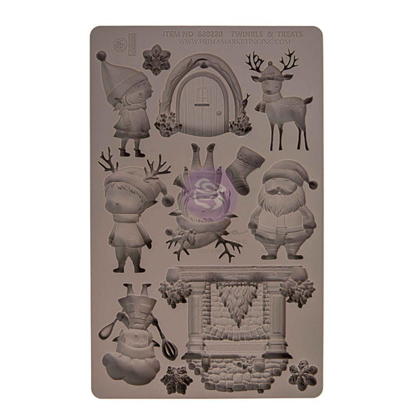 Prima Marketing Decor Mould 5"X8"X8mm Twinkle & Treats - The Twinkle & Treats silicone mould is filled with the sweetest holiday icons, ready to cast again and again in resin, clay, modelling material, or even edible mediums. This mould includes elves, Santa, reindeer, stockings, snowflakes, a cosy fireplace, a woodland door, and more everything you need to bring baking, winter, and Christmas storytelling into your creations. Durable, food-safe, and highly detailed, this mould is perfect for ornaments, embellishments, home decor, mixed media, and holiday treats.