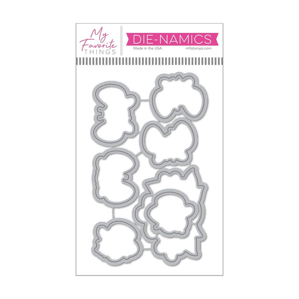 My Favorite Things Die-Namics Dies - Bubbly Butterflies. Lift up those you love with this wonderfully weaving assortment of delightful butterfly friends. This die set coordinates with the Bubbly Butterflies stamp set (JB-057) for perfectly die-cut images, each sold separately. The dies are open inside to allow you to stamp then cut or cut then stamp. This feature also allows for easier removal of the die cuts. The dies are compatible with most die-cutting machines (sold separately). (7) piece set.