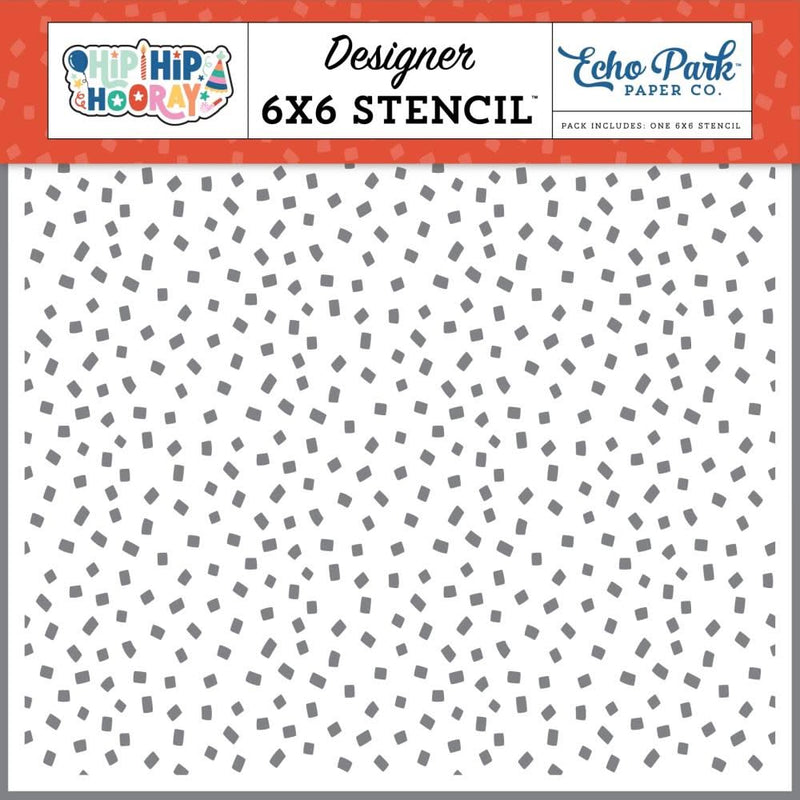 Echo Park Hip Hip Hooray Stencil 6"X6" Party Time Confetti - Stencils are perfect for using on mixed media, card making, scrapbooking, textile art and so much more. Use them together or on their own. They are made from durable mylar and can be used with paint, ink, ink pads, chalk, mica mists and more. They are a great addition to your die cutting embossing machine. Stencils can also be used to dry emboss for a more delicate effect. This package contains 6x6 inch stencil.