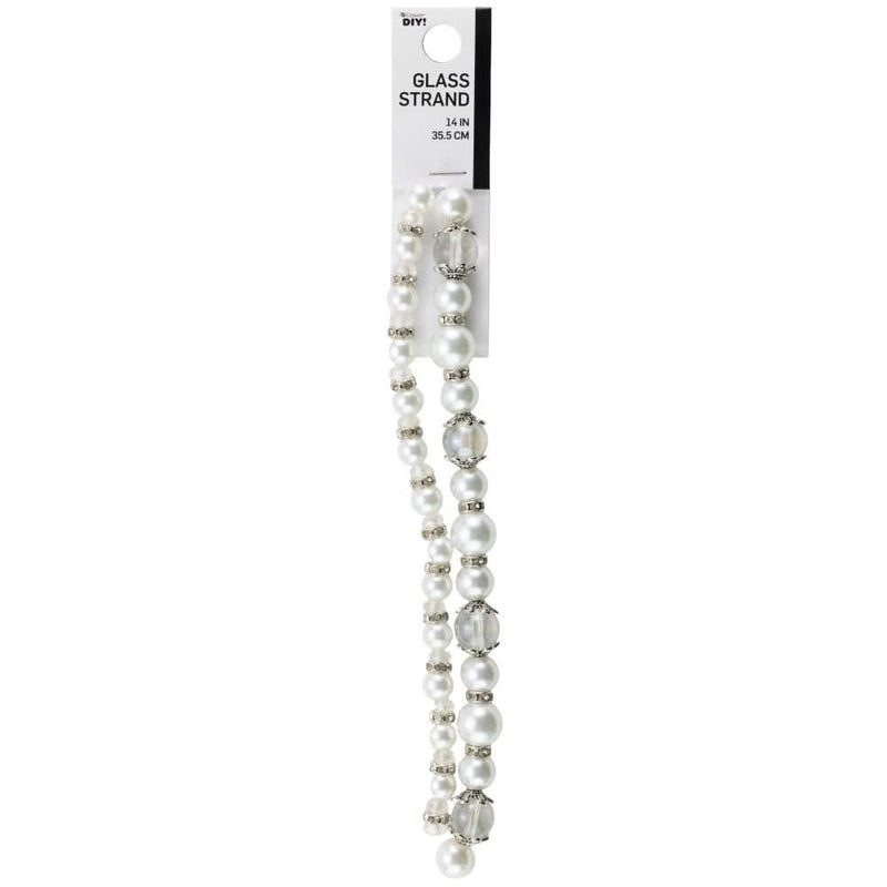 Cousin DIY Pearl Mix Bead Strand 14" 69/Pkg White - The Cousin DIY White Pearl Bead Strand is perfect for adults of any gender looking to add a classy touch to their creations. Made of glass, it's great for DIY projects. With 69 metal beads, caps, and spacers, this 14-inch (35.5cm) strand is versatile for unisex jewelry making. Whether as a centerpiece or an addition, it adds elegance to any design.