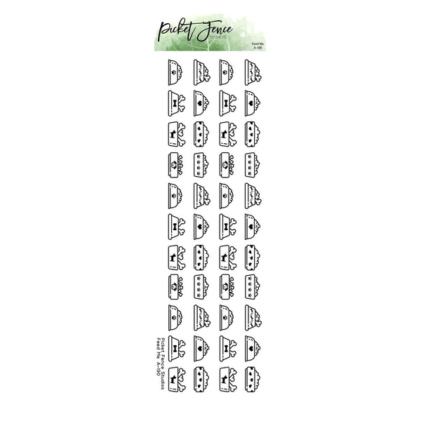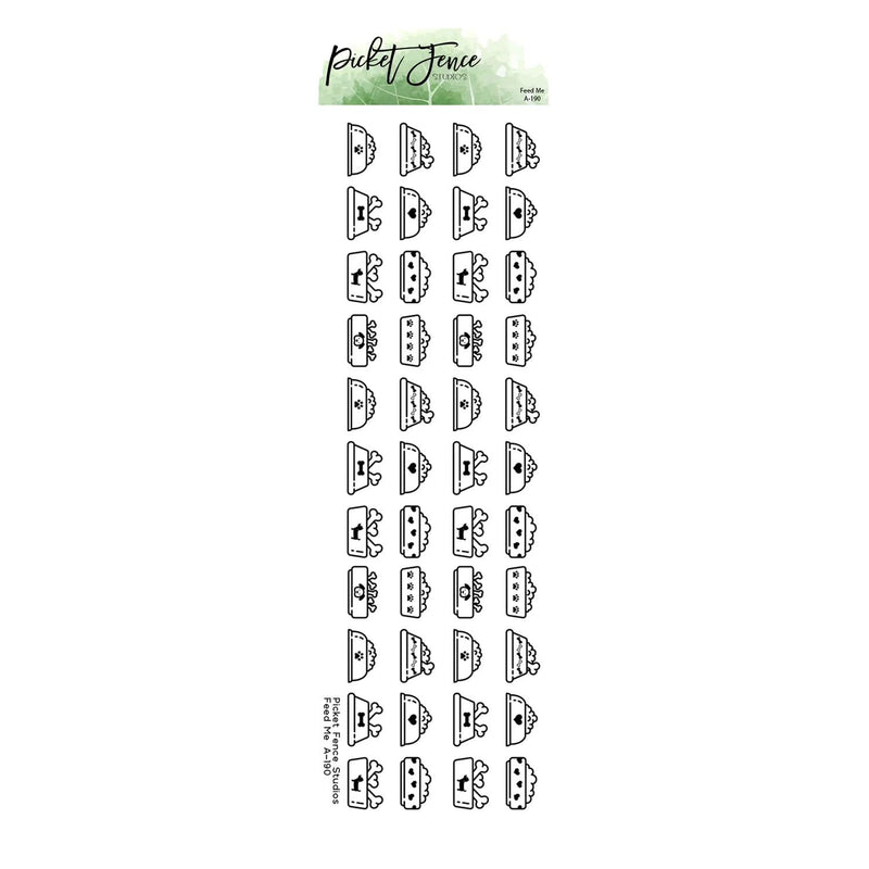 Picket Fence Studios Clear Stamp - Feed Me. This stamp adheres to an acrylic block and can be used with your favourite inks, markers, embossing powders, watercolours, coloured pencils, and other crafting mediums (all sold separately). This stamp can be used to make cards, scrapbook pages, tags, journal and planner pages, and other paper crafting and mixed media projects. One stamp. Size: 2"x 6"