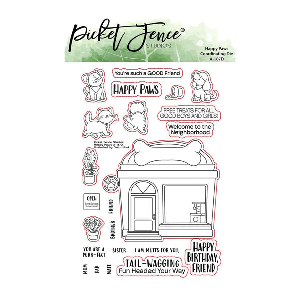 Picket Fence Studios Happy Paws Coordinating Die Set. This finely crafted steel die set is designed to perfectly coordinate with the Happy Paws stamp set (A-187, sold separately), allowing you to effortlessly cut out intricate designs and images with precision and ease. Compatible with most die-cutting machines (sold separately). Includes 12 dies.