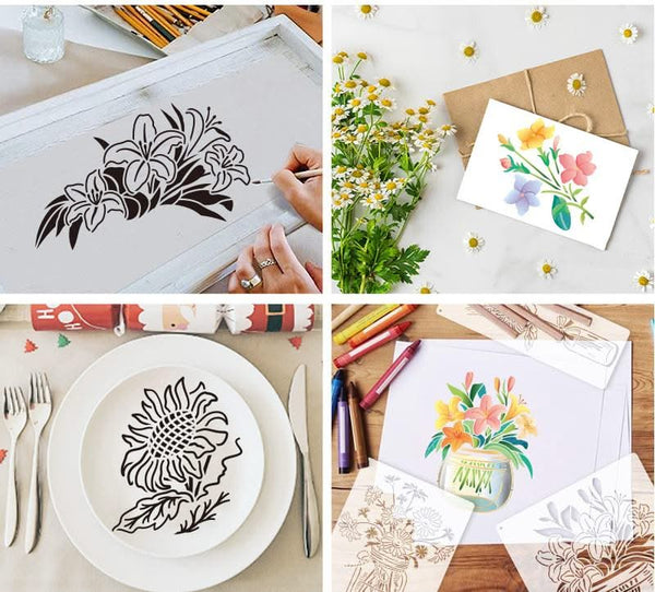 Poppy Crafts stencils can be used with your favourite sprays, inks, paints, glitter pastes, texture pastes, embossing pastes, and other crafting mediums (sold separately) to create fun and creative images. These stencils clean up easily and can be used time and again. The set includes 5 stencils. Stencil Sizes: Largest 21cm x 29.5cm.