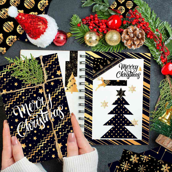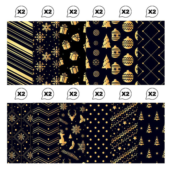Poppy Crafts 12"x12" Christmas Collection Paper Pack #101 - Black & Gold. The Poppy Crafts 12 x 12 inch Paper Pack is perfect for a variety of projects including mixed media and lots more! This package contains twenty-four Christmas themed 12 x 12 inch (30cm x 30cm) sheets of single-sided cardstock in 12 designs (2 of each design). Acid and lignin-free. 160 gsm cardstock.