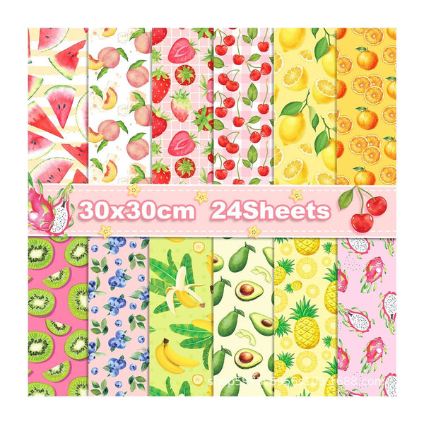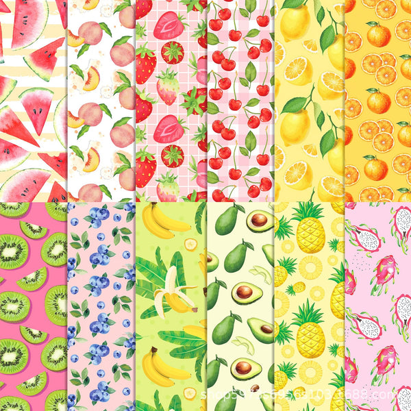 Poppy Crafts 12"x12" Paper Pack #93 - Fresh Fruit. The Poppy Crafts 12 x 12 inch Paper Pack is perfect for a variety of projects including mixed media and lots more! This package contains twenty-four 12 x 12 inch (30cm x 30cm) sheets of single-sided cardstock in 12 designs (2 of each design). Acid and lignin-free. 160 gsm cardstock.