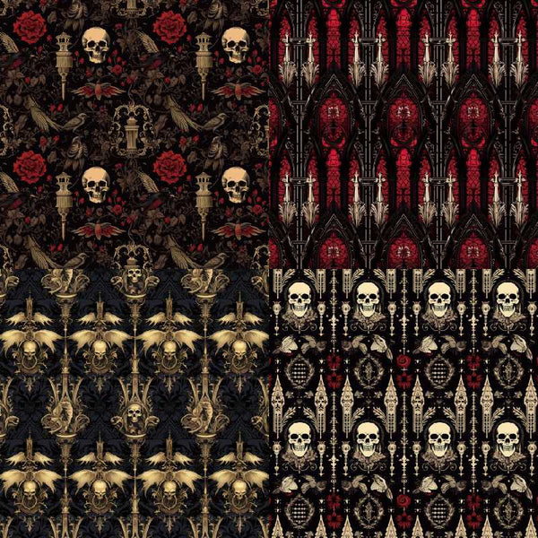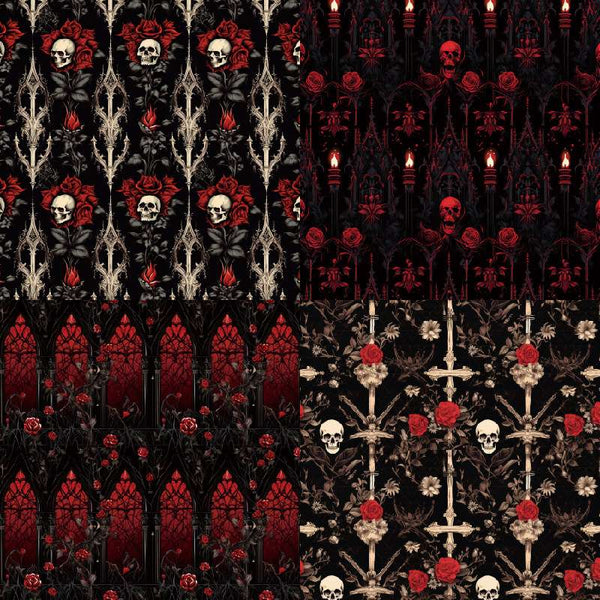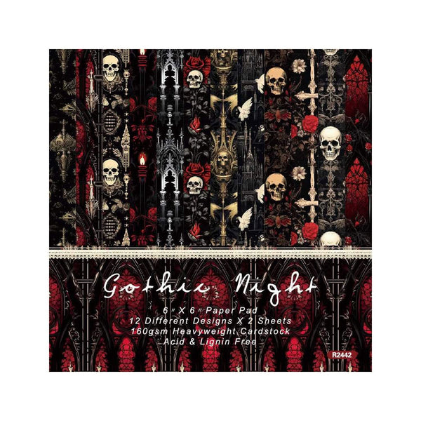 Poppy Crafts 6"x6" Halloween Collection Paper Pack #261 - Gothic Night. This Poppy Crafts Paper Pack is the perfect size for cards, embellishing larger pages, mixed media projects and more! This package contains twenty-four Halloween-themed 6"x 6" (15cm x 15cm) sheets of single-sided cardstock in 12 designs (2 of each design). Acid and lignin-free. 160gsm cardstock.