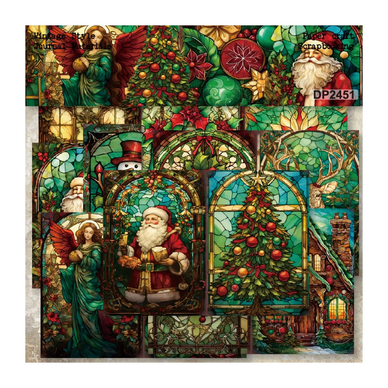 Poppy Crafts A5 Christmas Collection Paper Pack #21 - Stained Glass Santa. These scrap papers are perfect for scrapbooking, journaling, mixed media, card making, tags, traveller's notebooks, junk journals and so much more! Each pack consists of 8 pieces (8 designs, 1 each design). Available in a range of different designs, each sold separately. Single-sided paper. 160gsm. Approximate paper size: 14.4cm x 21cm