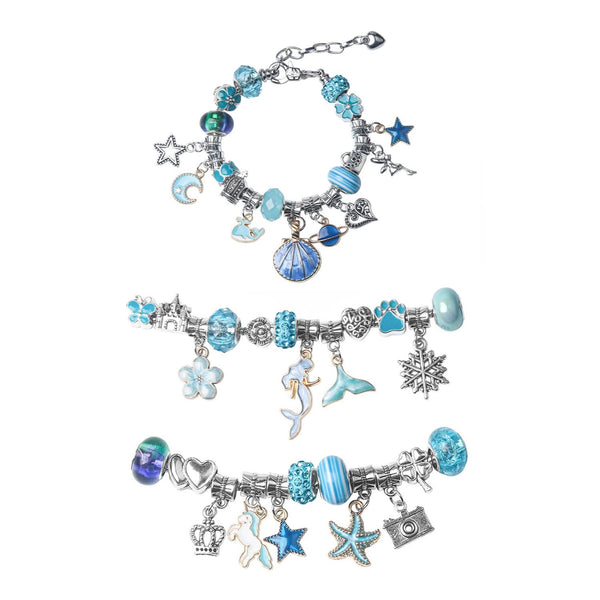 Poppy Crafts Charm Bracelet Making Kit - Blue. Create your own bracelets and accessories with this Poppy Crafts charm bracelet kit. This kit includes 3x Bracelets 16cm, 20x metal beads, 20x dangly beads, 20x Blue beads and 1x Blue gift box to store your beads and bracelets.