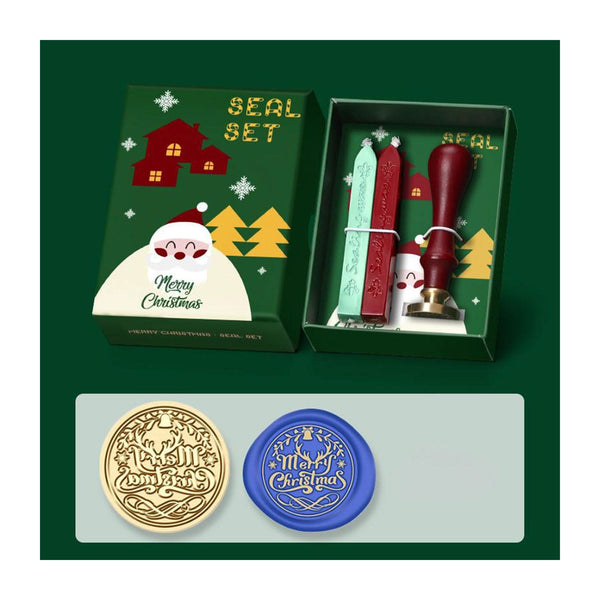 Poppy Crafts Christmas Gift Box Wax Seal Kit #54. This wax seal stamp kit is perfect for making invitations, Christmas letters, retro letters, envelopes, cards, crafts, gift sealing, wine sealing, tea or cosmetics packaging and other craft projects. Our sealing wax kit includes wax sticks, 1 x stamp handle and 1 x wax stamp design. It comes packed together in a Christmas-themed gift box.