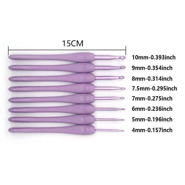 Poppy Crafts Crochet Hook Set #10 - Purple. These crochet hooks are comfortable and easy to grip while working on all crochet projects. Every hook is marked with the size, so you’ll never be confused. Crochet Hooks Size: 2.5mm, 3.0mm, 3.5mm, 4.0mm, 4.5mm, 5.0mm, 5.5mm, and 6.0mm. Package Includes: Eight Crochet Hooks.