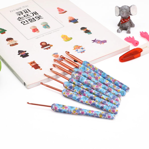 Poppy Crafts Crochet Hook Set #4 - Happier You - Blue. This compact and portable kit makes it easy to carry and will not take up too much space. These crochet hooks are comfortable and easy to grip while working on all crochet projects. Every hook is marked with numbers and Letter, so you’ll never be confused. Crochet Hooks Size: 2.5mm, 3.0mm, 3.5mm, 4.0mm, 4.5mm, 5.0mm, 5.5mm, 6.0mm. Package Includes: 8 x Blue Floral Crochet Hooks, 10 x Stitch Markers, 9 x Large-Eye Blunt Needles, 1 x Measuring Tape and 1 x Zip up Storage Case