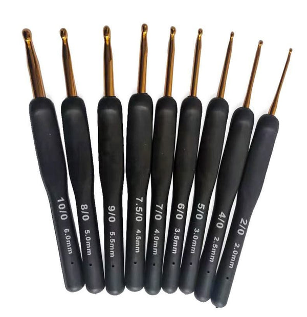 Poppy Crafts Crochet Hook Set #8 - Midnight. This compact and portable set makes it easy to carry and will not take up too much space. These crochet hooks have soft grip handles which makes them comfortable and easy to grip while working on all crochet projects. Every hook is marked with numbers and sizes, so you’ll never be confused. Crochet Hooks Size: 2.0mm, 4.0mm, 5.0mm, 6.0mm, 7.0mm, 7.5mm, 8.0mm, 9.0mm, 10.0mm. Package Includes: 9 x Crochet Hooks and 1 x Zip up Storage Case.