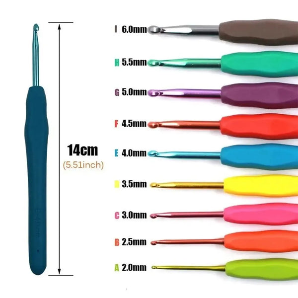 Poppy Crafts Crochet Hook Set #9 - Soft. These crochet hooks have soft handles which makes them comfortable and easy to grip while working on all crochet projects. Every hook is marked with numbers and Letter, so you’ll never be confused. Crochet Hooks Size: 2.0mm, 2.5mm, 3.0mm, 3.5mm, 4.0mm, 4.5mm, 5.0mm, 5.5mm, 6.0mm. Package Includes: Nine Crochet Hooks.