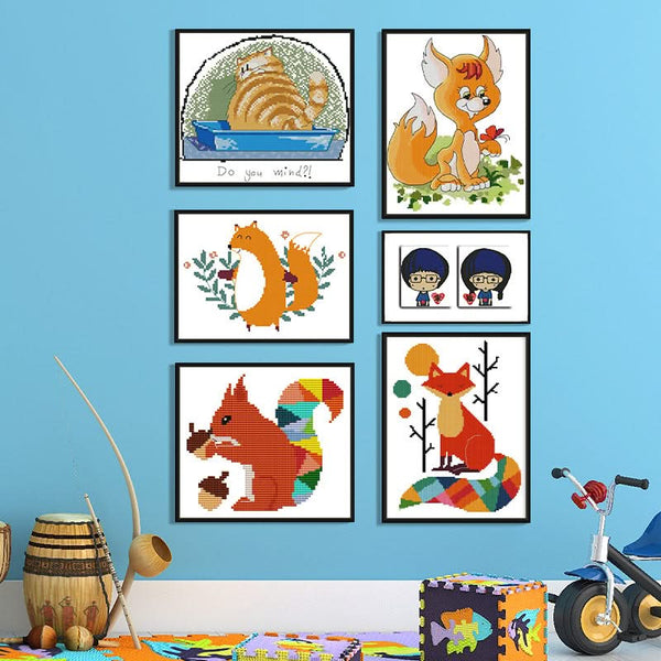 Poppy Crafts Cross-Stitch Kit 76 - Little Fox No. 2. These Poppy Crafts cross stitch kits are perfect for all ages, beginners, adults or advanced stitchers. Make fun handmade crafts for Christmas Day, Birthdays, Weddings, New Years etc. This package includes all the basic tools and accessories: colourful thread lines, embroidery needles, pre-printed fabric and instructions. Size: 25cm x 31cm