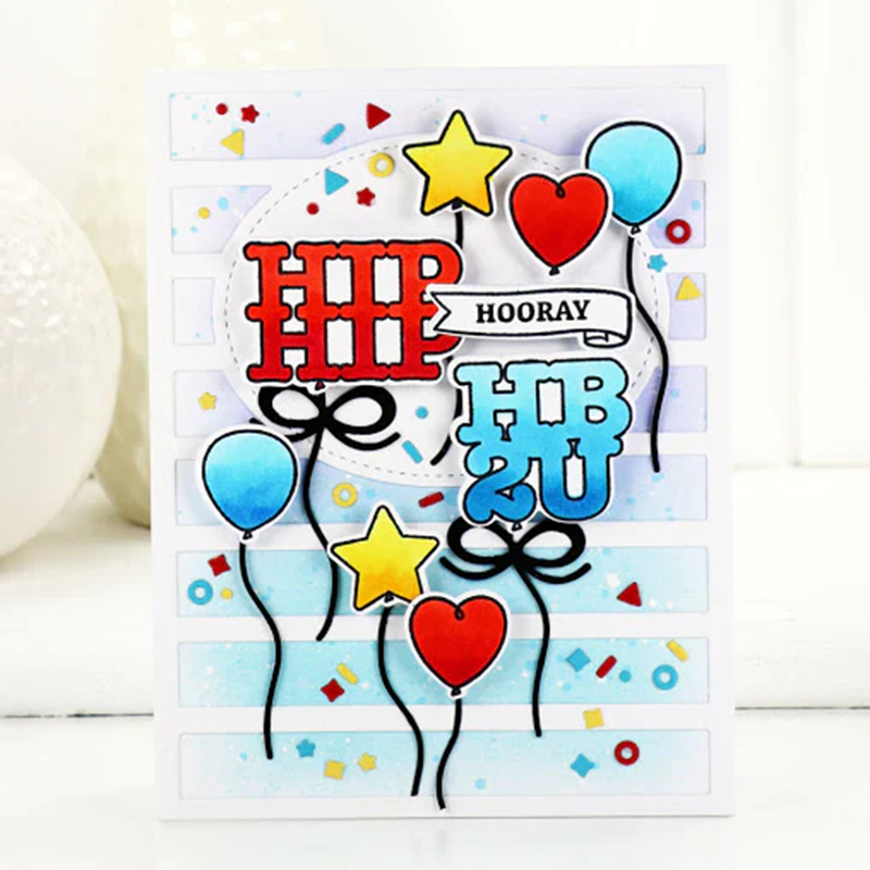 Poppy Crafts Cutting Dies & Stamp Set #137 - Balloon HB2U. Create amazing papercraft projects with this beautiful stamp & die set! These are a great idea for all your greeting cards, place cards, scrapbooking and so much more. Compatible with most die-cutting machines (sold separately). This set contains 32 stamps with 20 coordinating dies. Stamp Set Size: 10cm x 14cm.