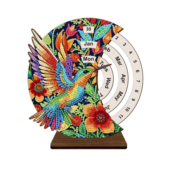 Create your own sparkling desk calendar with this unique DIY kit! Includes a rotatable calendar ornament, sturdy base, and diamond painting tool kit (colourful diamonds, wax, pen, and tray). Approximate Size: 18cm x 19cm.