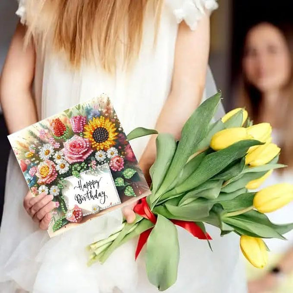 Create something beautiful with Diamond-like facets that shimmer in the light. Using the stylus, simply pick up a facet and place it onto the sticky design surface. Nothing can prepare you for the spectacular sparkling result of your finished project! Suitable for ages 8-80. This package includes everything you need to create beautiful cards. It contains 6x cards, 6x envelopes, Diamond Dots, 1x stylus, 1x diamond dot tray, and 1x piece of soft wax, providing all the necessary tools for your artistic creations. Closed Card Size: 15cm x 15cm.