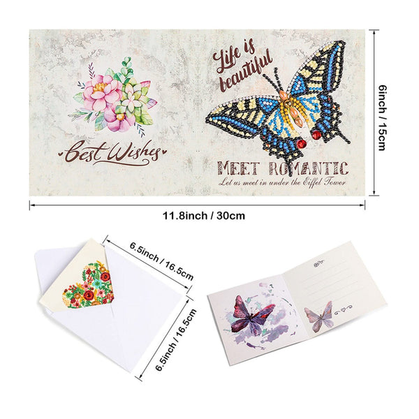 Poppy Crafts Diamond Art Greeting Card Kit #6 - 12 Pack. Create something beautiful with Diamond-like facets that shimmer in the light. Using the stylus, simply pick up a facet and place it onto the sticky design surface. Nothing can prepare you for the spectacular sparkling result of your finished project! Suitable for ages 8-80. This package includes everything you need to create beautiful cards. It contains 12x cards, 12x envelopes, Diamond Dots, 1x stylus, 1x diamond dot tray, and 1x piece of soft wax, providing all the necessary tools for your artistic creations. Card Size: 15cm x 15cm.