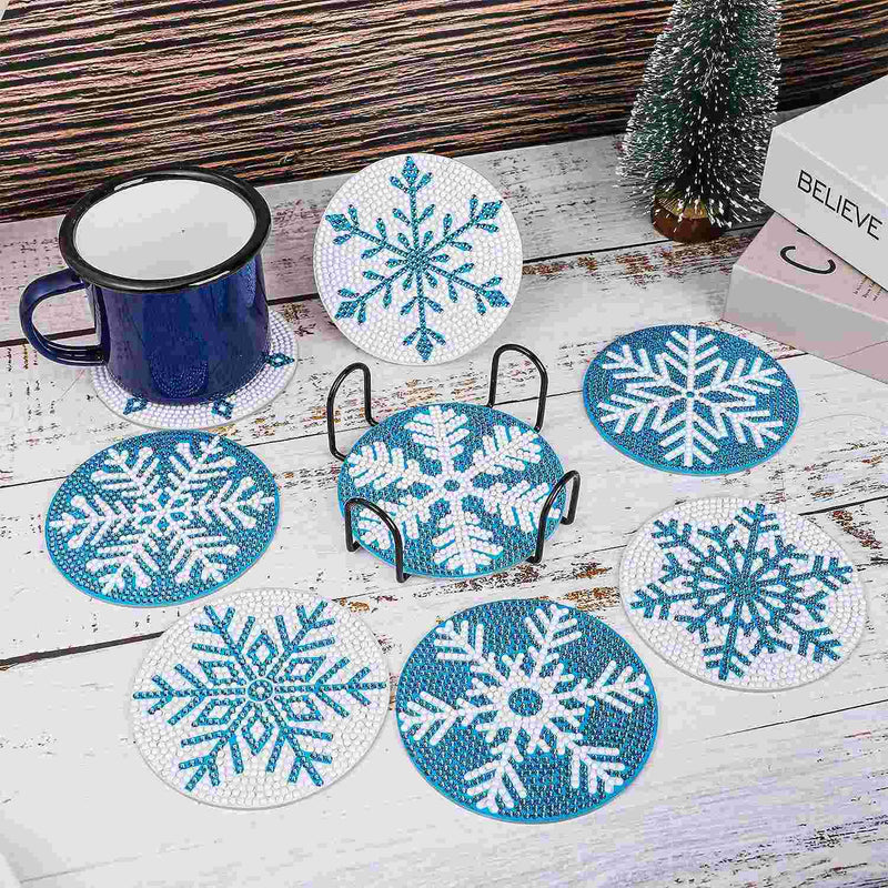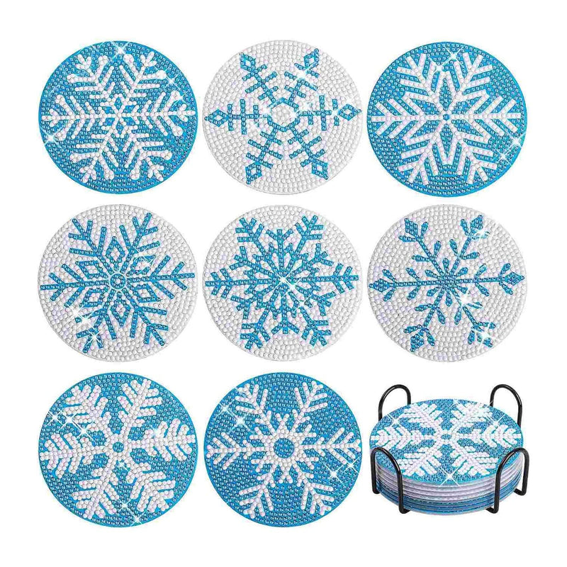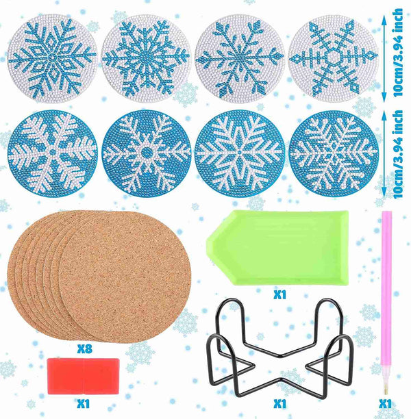 Poppy Crafts Diamond Coaster Kit - Snowflakes. Create something beautiful with Diamond-like facets that shimmer in the light. Using the stylus, simply pick up a facet and place it onto the sticky design surface. Nothing can prepare you for the spectacular sparkling result of your finished project! Suitable for ages 8-80. This package includes everything you need to create Eight beautiful coaster diamond paintings. It contains 8x coaster canvases, 1x coaster holder, Diamond Dots, one stylus, one diamond dot tray, and one wax caddy, providing all the necessary tools for your artistic creations. Coaster Size: 10cm x 10cm.